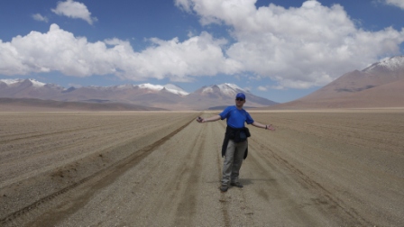 L'Altiplano Bolivien est comme un gigantesque terrain de jeu désertique: chacun choisi sa route, on conduit là où on veut (et la Jeep est le meilleur moyen de transport)! Premier arrêt pour admirer la Laguna Blanca...Fantastique... Ensuite, Laguna Verde: tout aussi fantastique! Ensuite, un arrêt rapide aux Agua Thermales pour faire trempette...puis des Geysers à 4700m avant de voir des formations rocheuses appelées "Desierto de Dali"...enfin, Laguna Colorada avec tous ses flamands roses...La première nuit dans l'Hospitaje est rustique mais confortable.